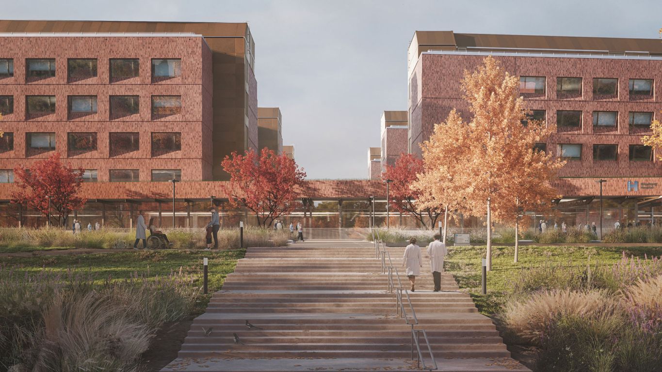 The new hospital will offer a modern, healing environment that supports comfort, privacy, and effective treatment, set in green surroundings to support recovery and wellbeing.